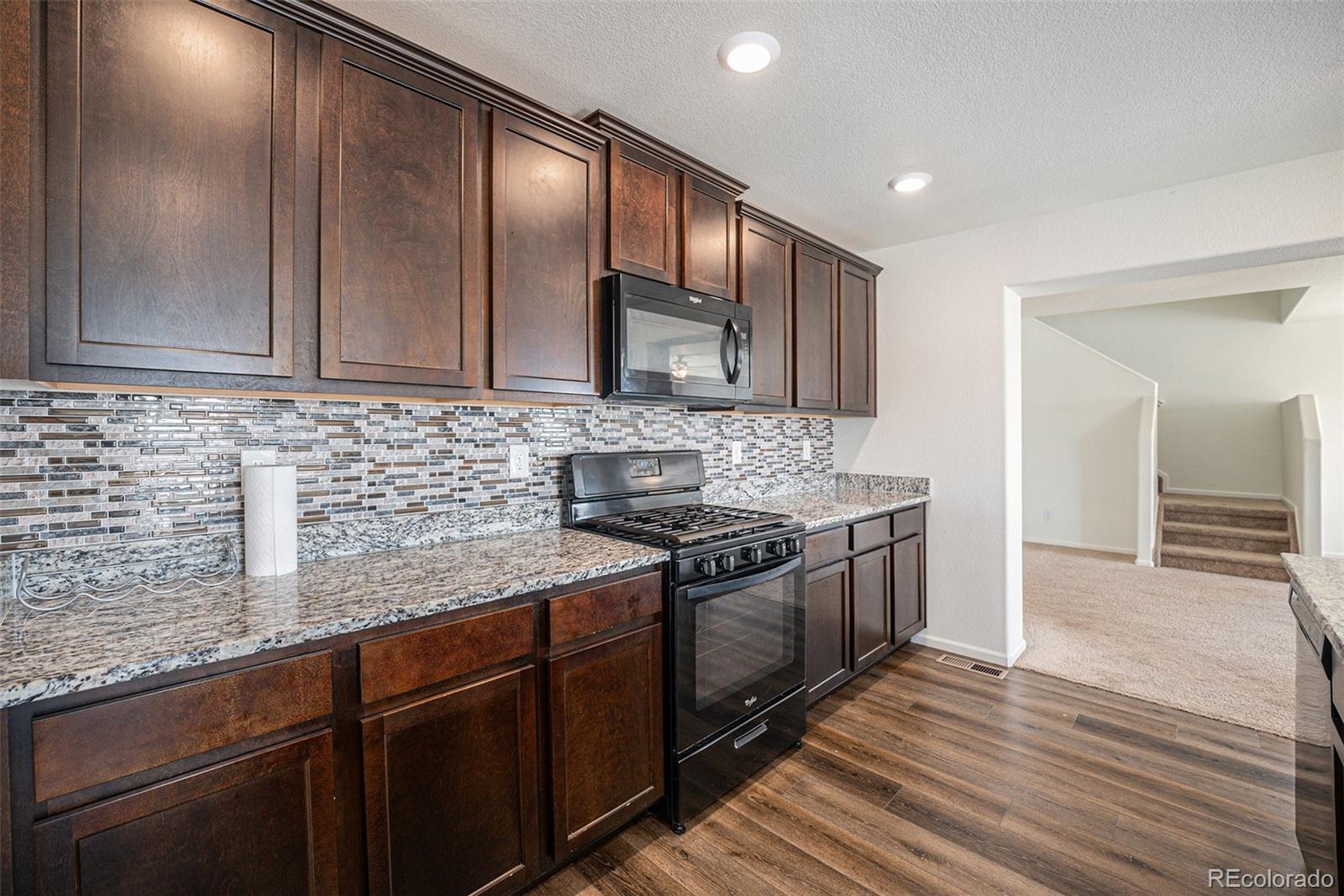 Ask about our lender incentives for a mortgage rate buydown on this home*Wonderful opportunity to own a 5-bedroom house just built in 2019*Inviting covered front porch leads into the open & spacious main floor offering stylish LVT flooring, a sprawling family room, large kitchen and adjacent formal dining room*Gorgeous chef's kitchen features granite counters, shaker style wood cabinets with crown molding, black appliances including gas range, oversized island for barstool seating, mosaic tile backsplash & walk-in pantry*Convenient main floor bedroom with adjacent full bathroom offers a no stairs living option*Fully fenced backyard with a huge concrete patio*Upstairs features a spacious primary suite with expansive 15 x 8 ft. walk-in closet and attached full bath with deep soaking tub & dual vanities with granite counters*Large loft that could be used as an office, guest room, additional living space, etc.*The 2nd level also offers 3 more bedrooms, a full bathroom with dual vanities, walk-in storage closet & laundry room with new full sized washer & dryer included*Deep 2-car attached garage is dry walled & painted*Tall crawl space with access from the furnace room offers tons of storage*Dual zoned HVAC*Fantastic community park, open space & trails at the end of the block*Walking distance from the Bennett Rec Center*Conveniently located near shopping, dining & grocery*Quick & easy commute to Denver, E-470, Buckley AFB & DIA*The preferred lender for this listing is providing a free 1-0 temporary rate buydown for qualified buyers to reduce buyer's rate on this property for 12 months. Please inquire for further information*Come make this beautiful 5-bedroom house in the charming small town of Bennett your new home today!